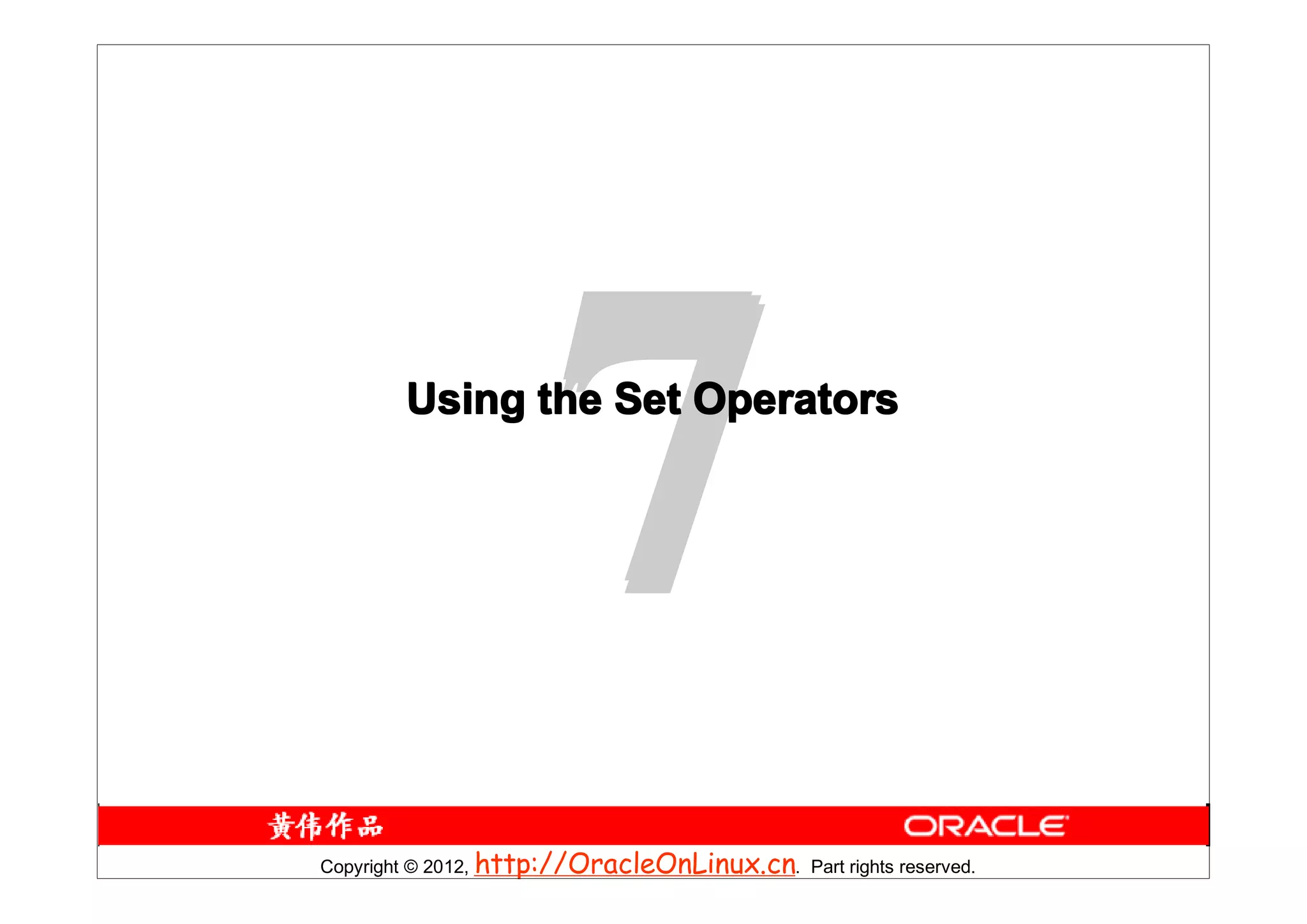This document discusses using set operators like UNION, INTERSECT, and MINUS to combine multiple queries into a single query. It describes how UNION returns distinct rows from multiple queries, UNION ALL returns all rows including duplicates, INTERSECT returns rows common to both queries, and MINUS returns rows in the first query not present in the second. The document provides examples of using these set operators on tables containing employee and job history data.