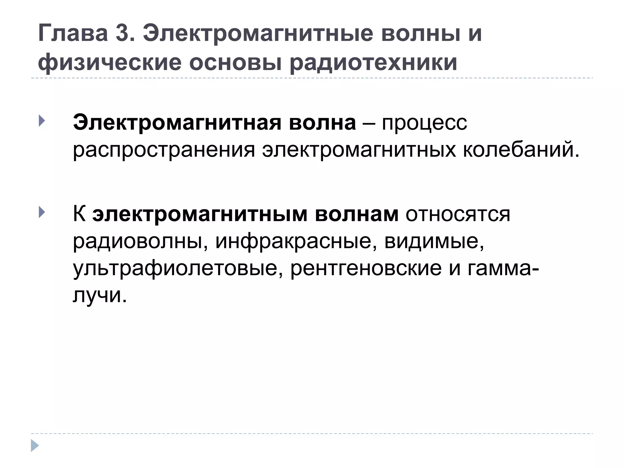 Документ рассматривает электромагнитные волны и физические основы радиотехники, включая различные типы волн и теории их взаимосвязи. Обсуждаются теории Максвелла, Ньютон и Фарадей, а также их вклад в понимание электромагнитного поля. Основное внимание уделяется свойствам электромагнитных волн, их скорости и частоте колебаний.