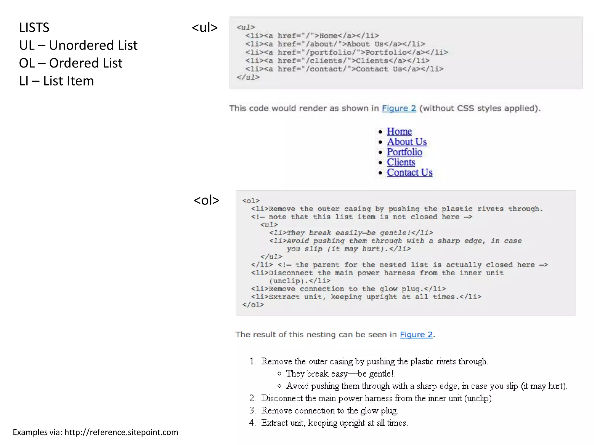 The document discusses various CSS properties including lists, selectors like id and class, display types, positioning, float, and clear. It provides examples of how to use ul, ol, and li elements to create lists. It also demonstrates using id and class selectors to style specific elements or groups of elements. Common display types like block and inline are defined. Positioning options like relative, absolute, and their use of properties like top and left are outlined. The float property is described for shifting elements left or right, and clear is used to avoid elements flowing around floated items.