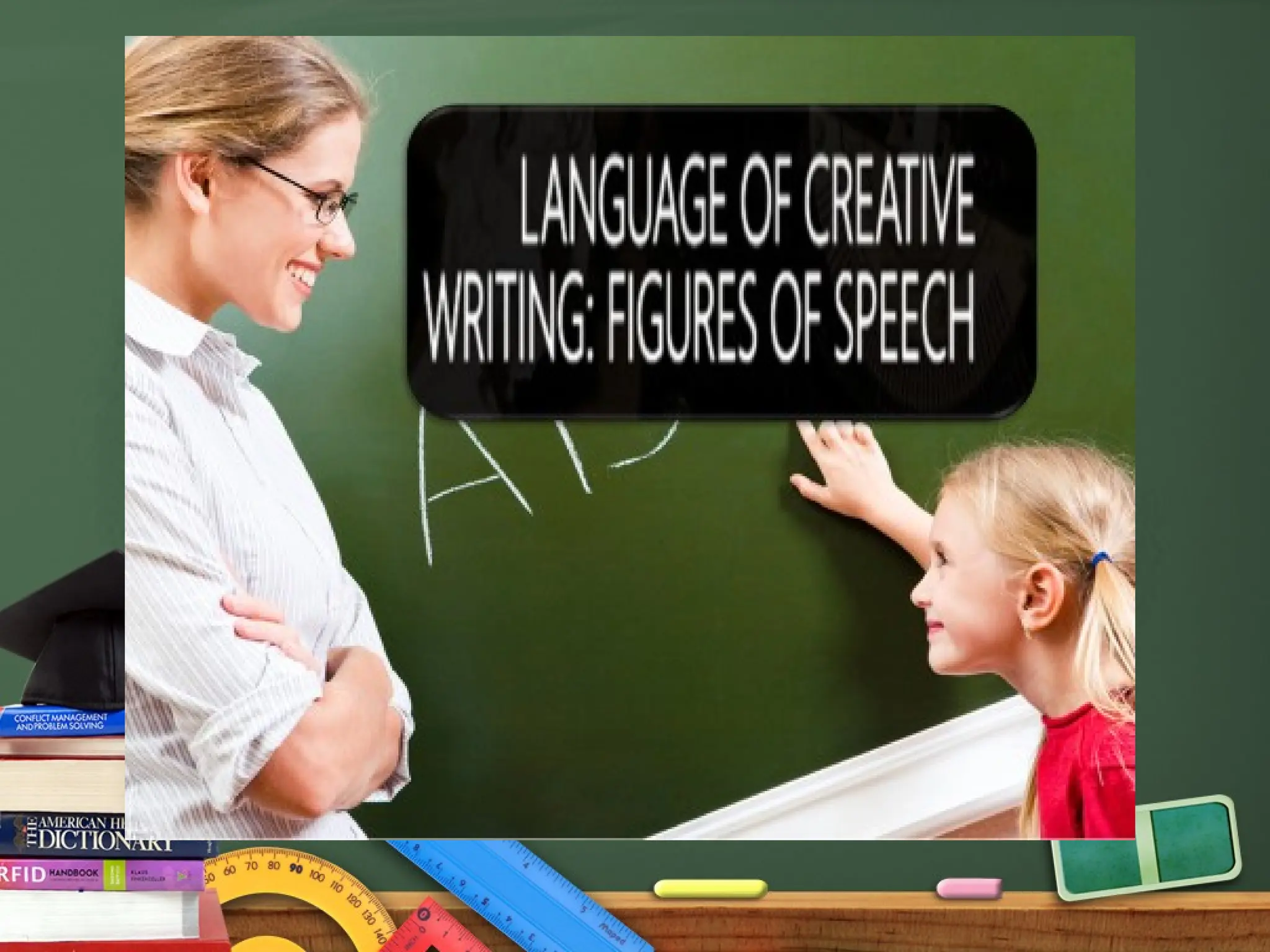 Figures of speech are creative language expressions used to make writing more vivid, interesting, or imaginative. They go beyond the literal meanings of words to create special effects or deeper understanding. Common examples include simile (comparing two things using like or as), metaphor (a direct comparison between two unlike things), personification (giving human qualities to nonhuman things), hyperbole (intentional exaggeration), onomatopoeia (words that imitate sounds), and idioms (phrases with meanings different from their literal words).