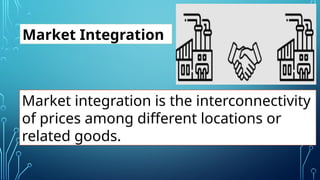 Market integration refers to the interconnectedness of prices across different locations or related goods, driven by reduced transportation costs and trade barriers. It improves global trade efficiency and market competition, while offering benefits such as higher profits, new market access, and varied product availability; however, it can also lead to potential downsides like reduced quality and flexibility. There are three primary types of market integration: horizontal, vertical, and conglomeration, each with specific advantages and disadvantages.