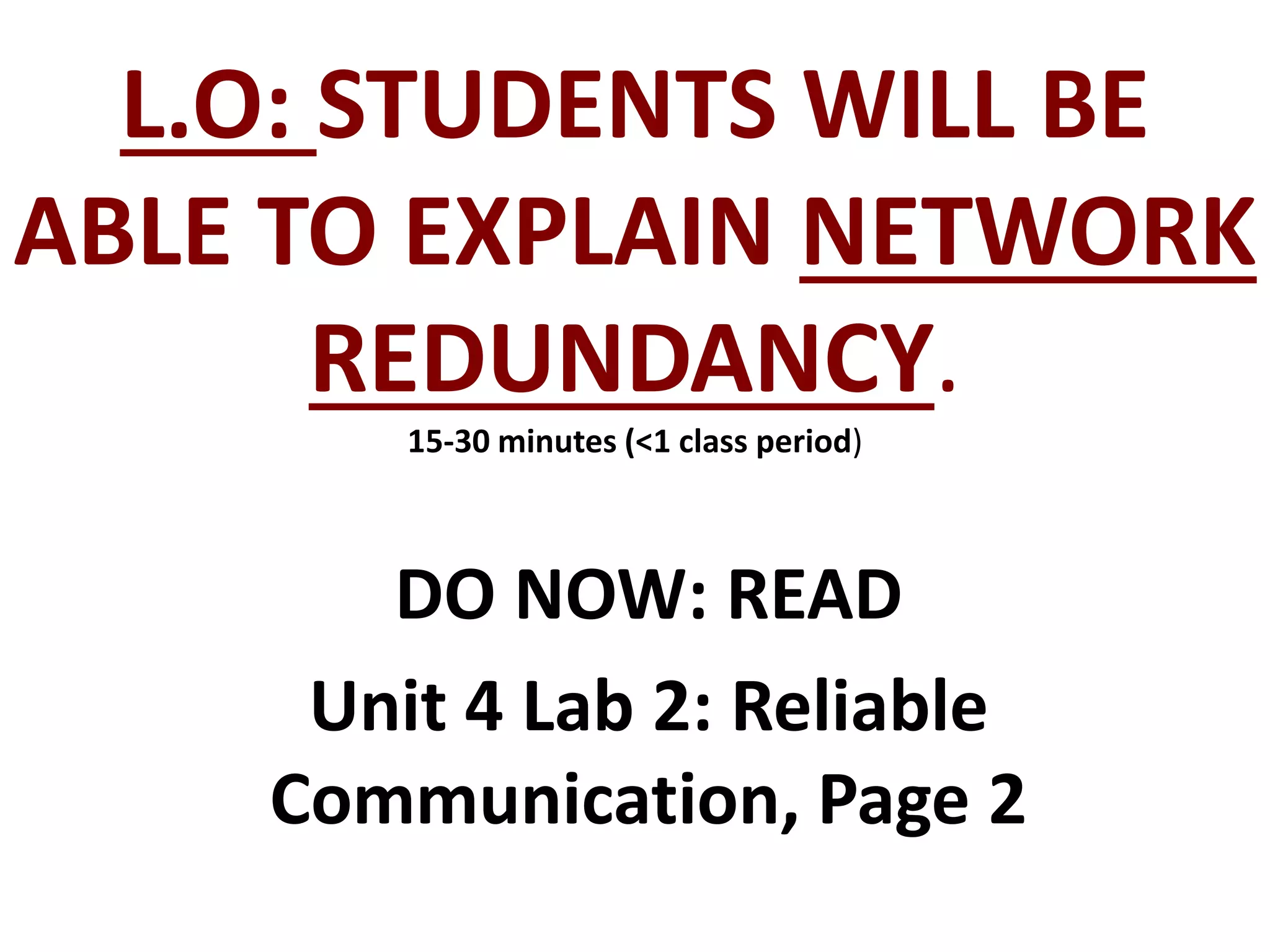 The document discusses network redundancy and how it makes the internet reliable. It explains that the internet has many redundant connections between physical systems, so even if part of the network fails, information can still reach its destination through alternative routes. This redundancy increases the internet's fault tolerance and allows it to scale up as more devices and users join the network. The document also contains learning objectives, essential knowledge, and questions about a network diagram.