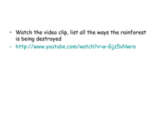The document discusses the significant impacts of human activity on the biosphere, focusing on how pollution and climate change degrade ecosystems like tropical rainforests and tundras. It highlights a vicious cycle where deforestation contributes to climate change by releasing stored carbon, leading to further environmental consequences. Additionally, concerns regarding the thawing of permafrost in the Arctic are raised, as it may release vast amounts of greenhouse gases, exacerbating global warming.