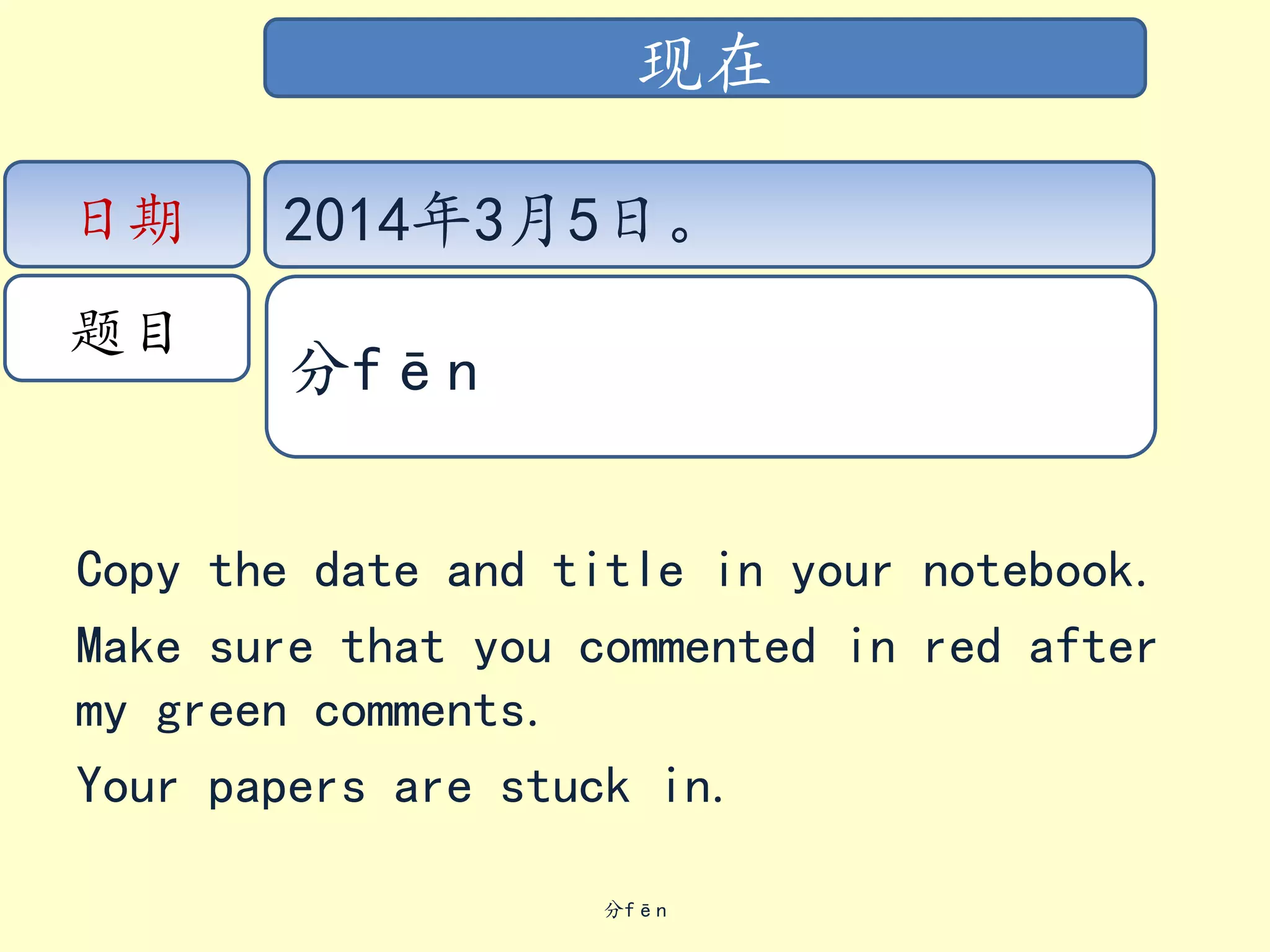 Copy the dateand title in your notebook.