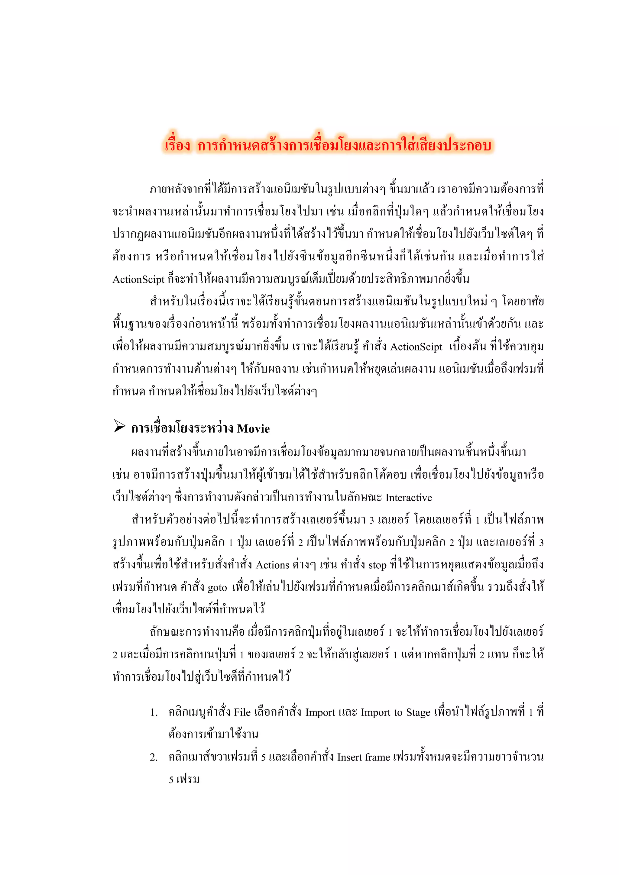 ตัวอย่าง gotoAndPlay (“Scene 2”, “1”) เป็นต้น
