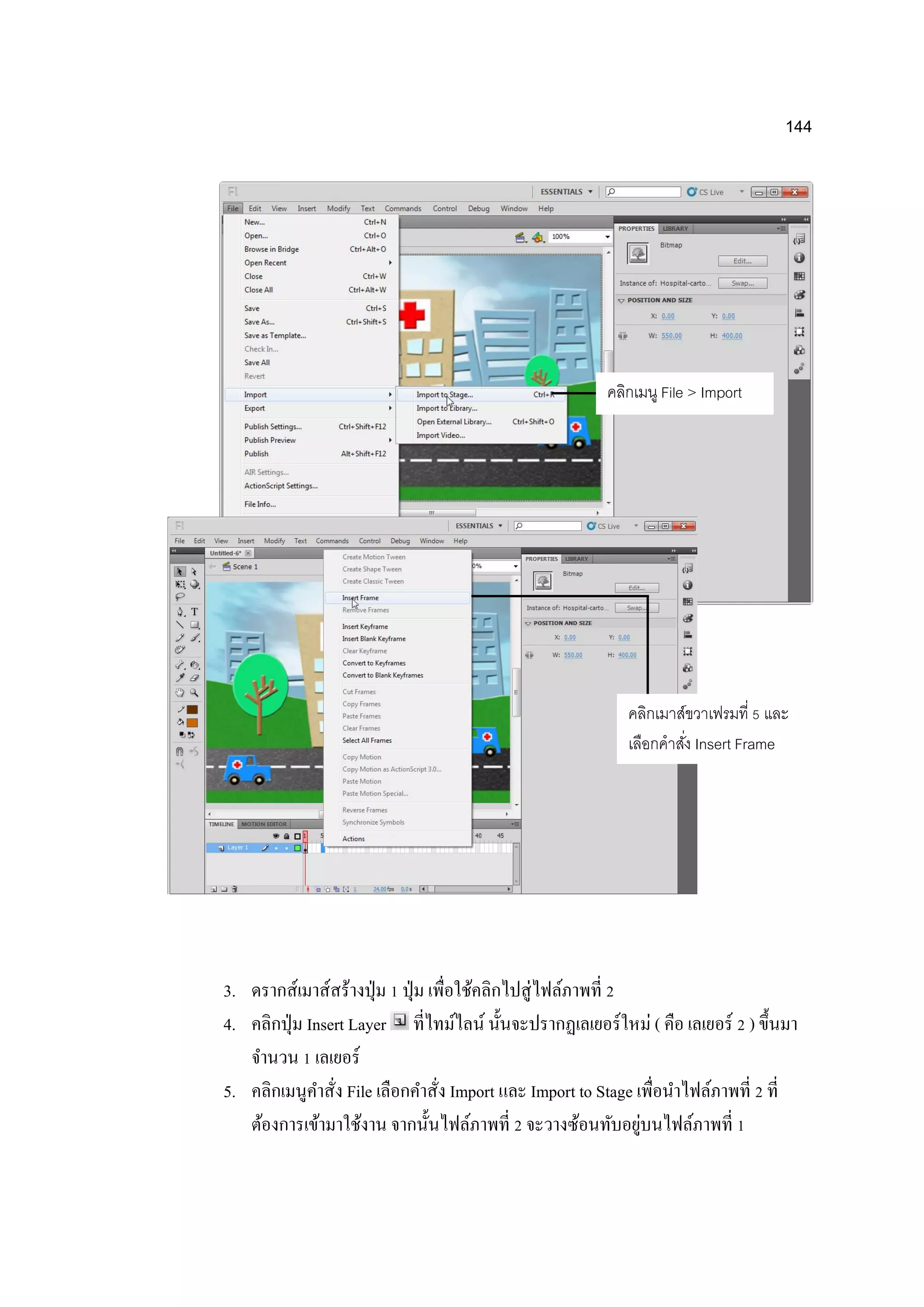 15. ในวงเล็บให้พิมพ์ชื่อ Scene เมื่อคลิกที่ปุ่มก็จะเชื่อมโยงเข้าสู่ Scene ที่ 2 ในเฟรมที่ 1