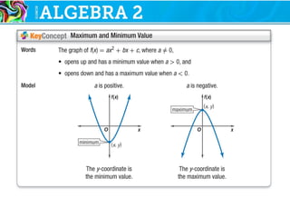 Example 2: Axis of Symmetry, y-intercept, and Vertex