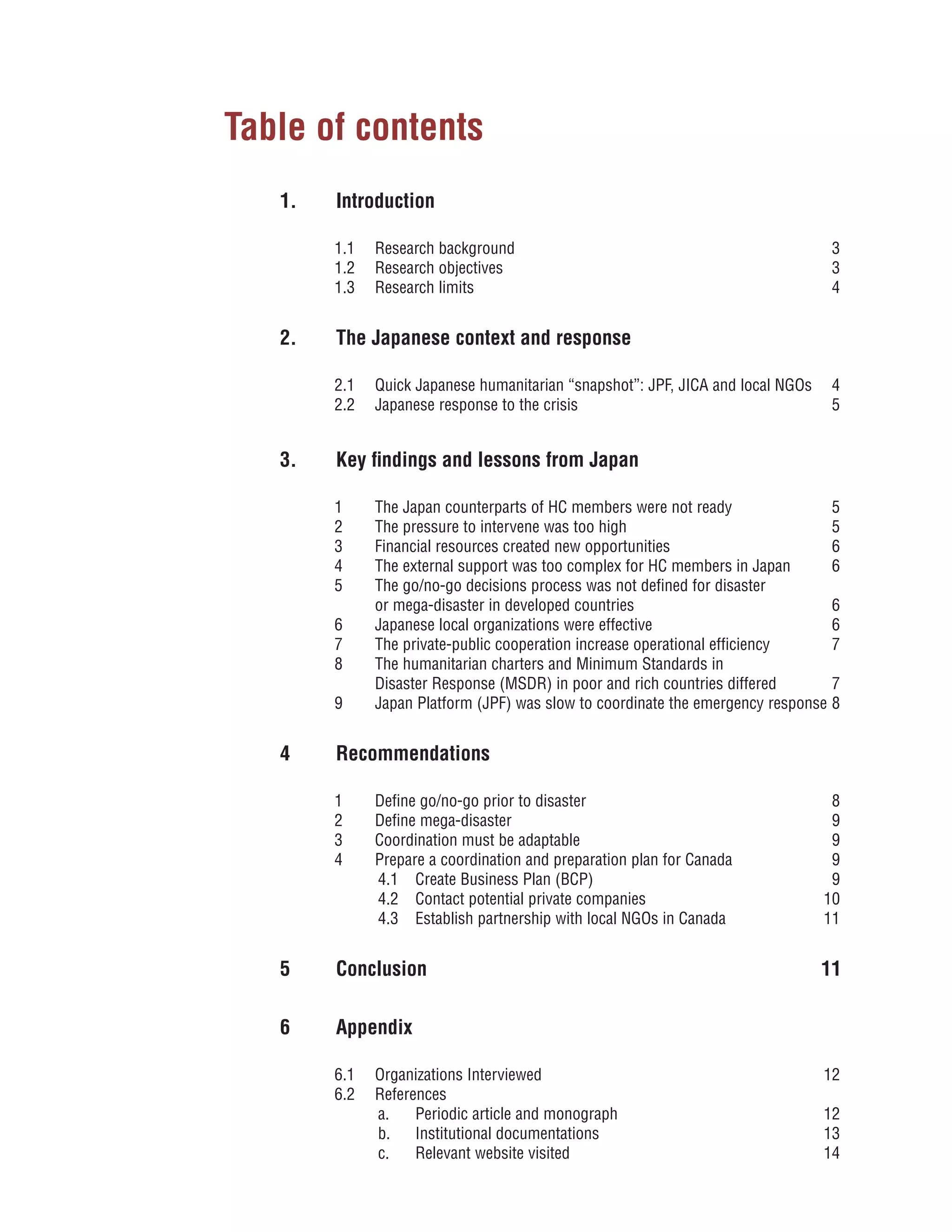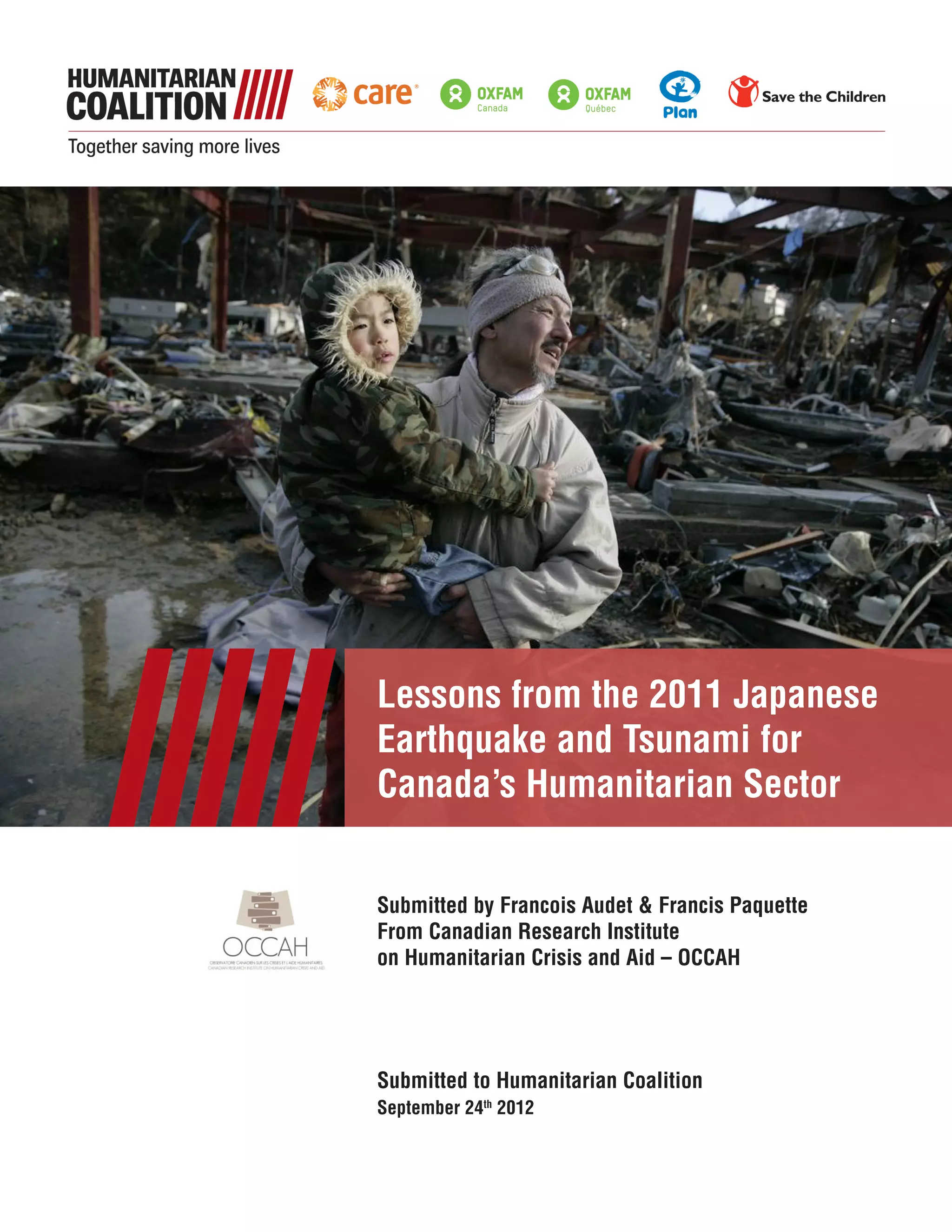 1) The Japan counterparts of Humanitarian Coalition members were not prepared to respond to a disaster of this magnitude occurring in their own country. Local Japanese organizations responded more quickly due to their deep community roots.