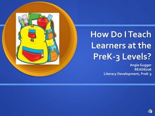 This document provides guidance for teaching literacy to pre-K through 3rd grade learners. It recommends getting to know students through cognitive and non-cognitive assessments, creating a print-rich environment, selecting a balance of informational and fiction texts, using read-alouds and small group instruction, and focusing on phonemic awareness, phonics, fluency, vocabulary and comprehension development for emergent and beginning readers through techniques such as writing.