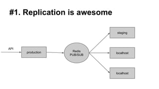 The document outlines key lessons learned from the development of searchd by Tomáš Kramár, highlighting the benefits of replication for production data management and testing. It emphasizes the importance of asynchronous processing for error recovery and data integrity, as well as dynamic partitioning in Elasticsearch for efficient querying. Additionally, the document discusses improving site speed by adopting asynchronous loading techniques.