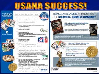 This document discusses two main challenges facing people which are finances and health. It then focuses on health issues, discussing the leading causes of premature death globally like heart disease and cancer. It notes concerns about aging healthily. The document discusses cells and the "war within our bodies" as cells are attacked by free radicals from various sources like pollution, toxins and stress. It shows images of healthy cells and damaged cells after a fast food meal. It discusses ensuring proper nutrition and supplements to support cellular health and oxidation defense. The document promotes USANA products as scientifically formulated and precisely balanced to provide complete nutrition to support health and cellular function.