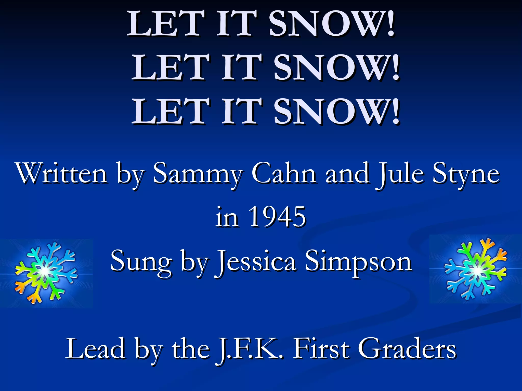 This document summarizes the lyrics to the Christmas song "Let It Snow" written in 1945. The song describes being inside on a snowy night with a fire, enjoying each other's company and hoping the snow continues so they have an excuse to stay inside together as the fire dies down and they say goodbye.
