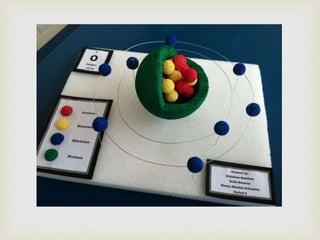 Pending models require a support structure like wood or metal to display them. Electrons are depicted smaller than protons or neutrons in diagrams of atom structure. When drawing atom diagrams, information must be included about the name, symbol, atomic number, atomic weight, valence electrons, and a QR code could provide more details.