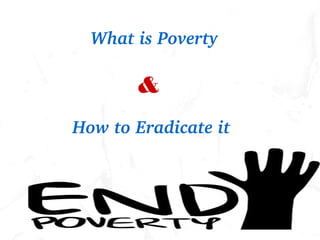 The document addresses poverty, stating that over a billion people live on less than $1 per day, which impacts social development, health, and economic growth. Key factors contributing to poverty include lack of education, population growth, and indebtedness. The text suggests that poverty alleviation can be achieved through strategic use of education, economic development, health initiatives, and income redistribution.
