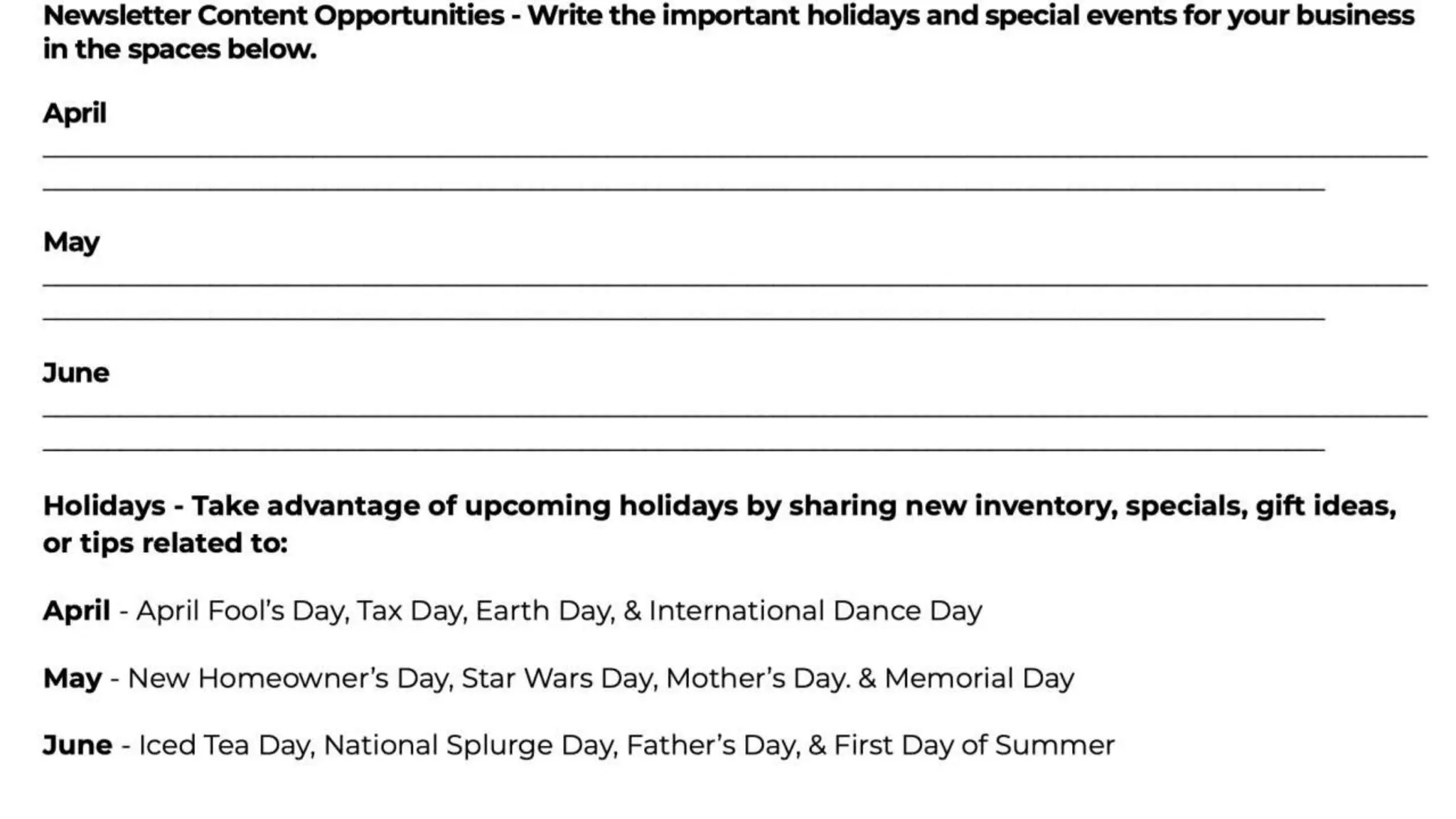 The document provides guidance on creating an effective email newsletter workflow. It recommends determining the newsletter purpose, frequency of sending (such as monthly), and best time to send (like Tuesday mornings). Planning content three months in advance is advised by calendarizing key dates, holidays, and content deadlines. Working backwards from send dates, the calendar allows scheduling review periods and content creation in advance to streamline the newsletter production process.