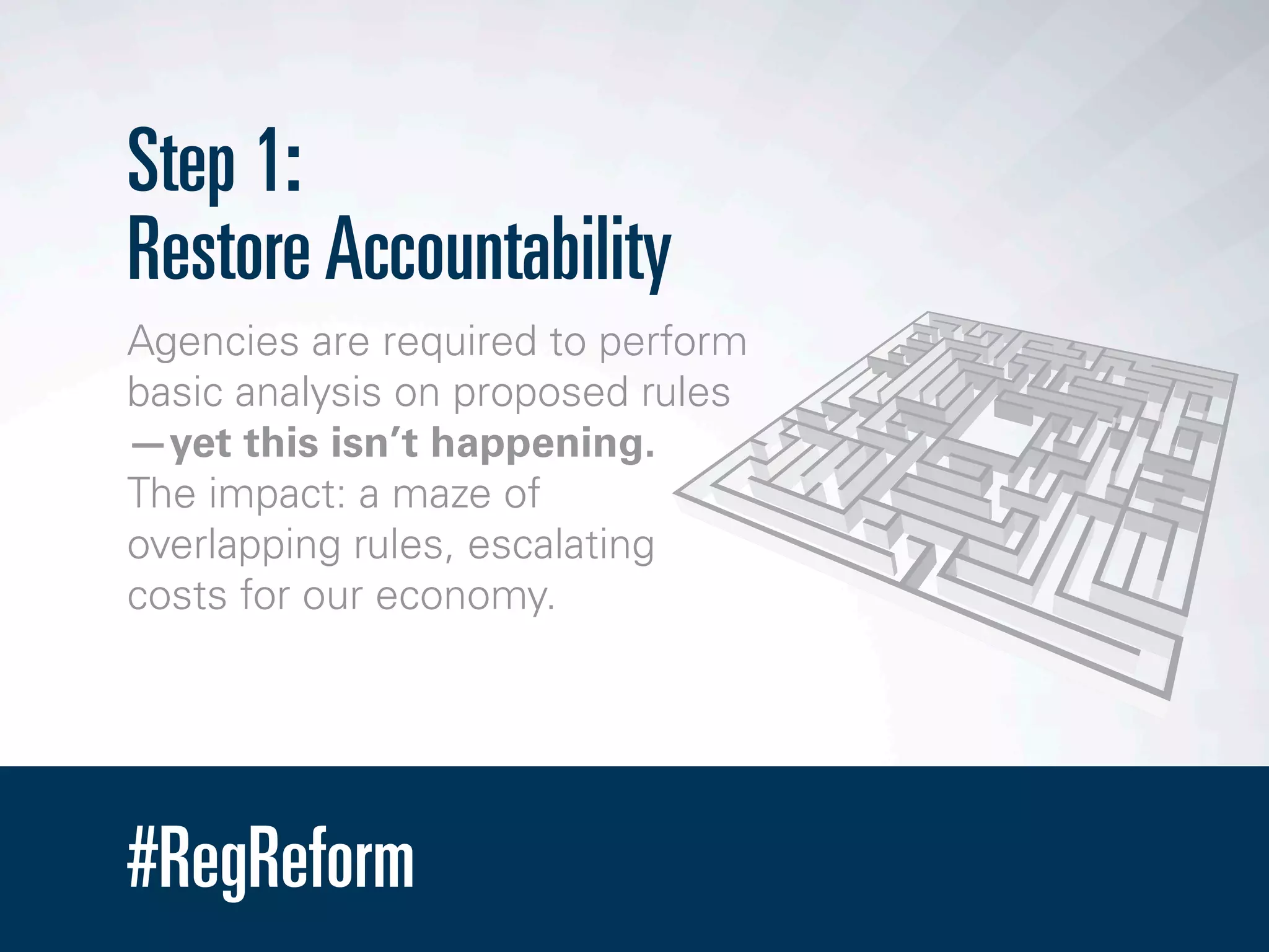 This document outlines 5 steps to reform the US regulatory system: 1) Restore accountability by requiring agencies to properly analyze proposed rules; 2) Increase transparency by making agency data and information more accessible; 3) Ensure meaningful public participation in the rulemaking process; 4) Guarantee a safe but swift permitting process through deadlines; 5) Encourage public support for regulatory reform by contacting lawmakers. Congress is urged to pass bills like the Regulatory Accountability Act and Federal Permitting Improvement Act to implement these reforms.