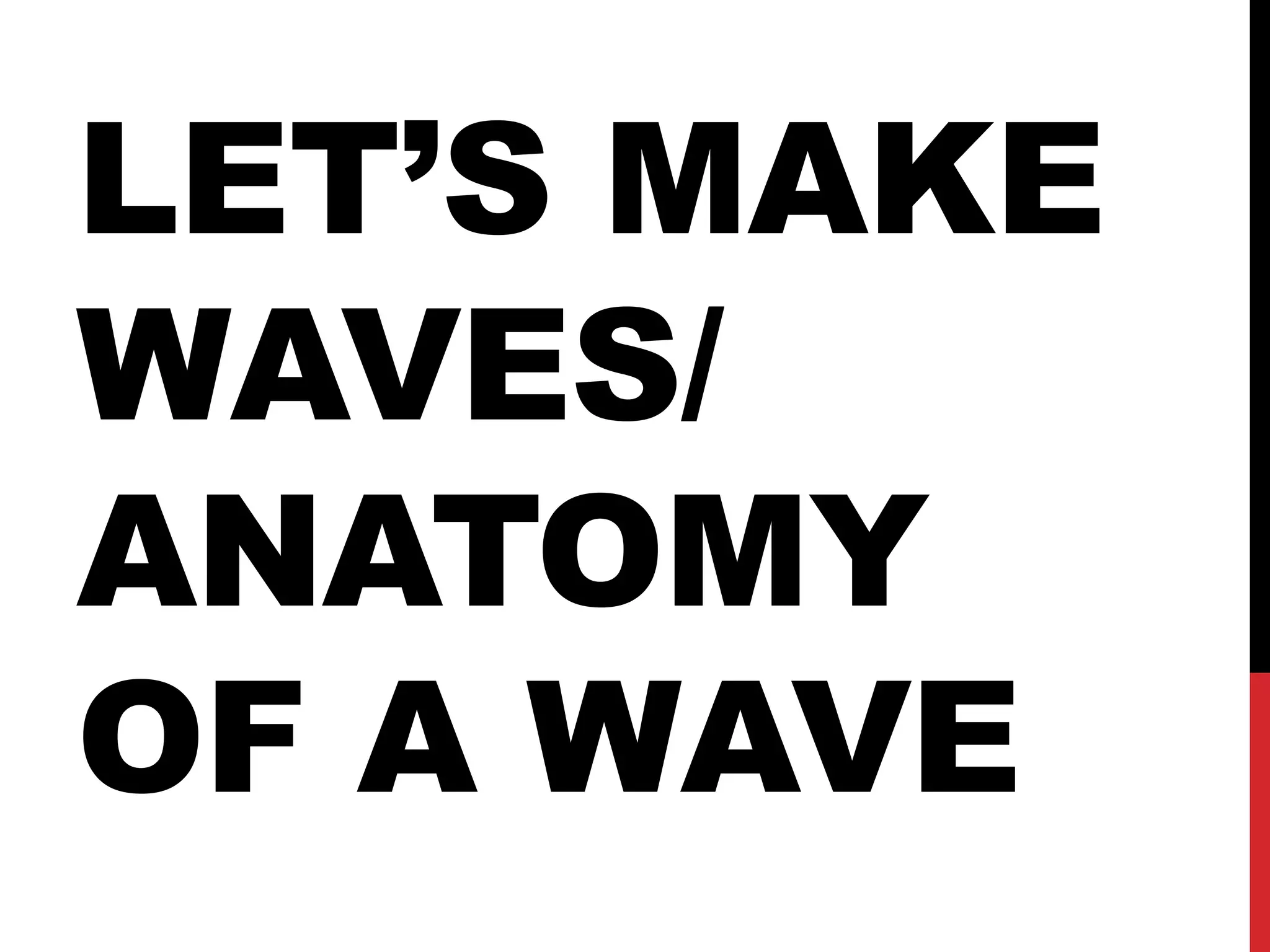 2. The key characteristics of waves include wavelength, frequency, period, amplitude, and wave speed. Wavelength is the distance between two identical points on a wave, such as two crests. Frequency is the number of waves that pass a point per second. Wave speed depends on wavelength and frequency according to the equation: Wave Speed = Wavelength x Frequency.
