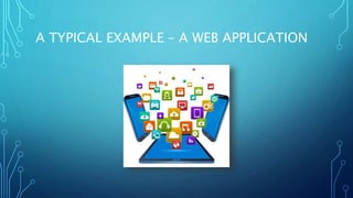 This document discusses using Amazon Web Services (AWS) to host a web application. It outlines various AWS services that can be used for computing, content storage and delivery, databases, user management, security, availability, and monitoring of the application. These include EC2 for computing, S3 and EBS for content, RDS and DynamoDB for databases, IAM for user management, KMS and Certificate Manager for security, Availability Zones for high availability, and CloudWatch for monitoring.