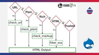 This document summarizes a presentation about writing secure Drupal code. It discusses common vulnerabilities like cross-site scripting, access bypass, and SQL injection. It provides examples of secure and vulnerable code and recommends best practices to prevent vulnerabilities, including input filtering, access control, and automated testing. It also discusses security improvements in Drupal 8 and learning from security advisories.