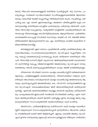 2. Shashi Kumar had initially allocated the position to the KC(M), but Thomas overruled this and allocated it to an independent instead. This caused tensions between the two leaders.