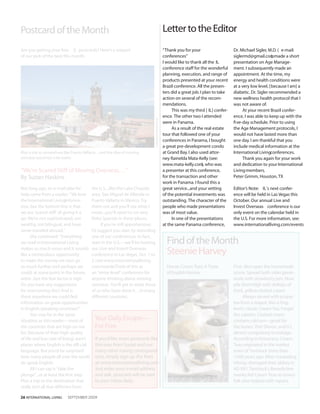 The document discusses the upcoming International Living conference in Las Vegas, focusing on opportunities for Americans considering moving overseas. It features testimonials from attendees about their experiences with age management health protocols and the benefits of international living. Additionally, it offers insights into cultural aspects, such as enjoying English cream teas, and encourages readers to take the first steps towards investing abroad.