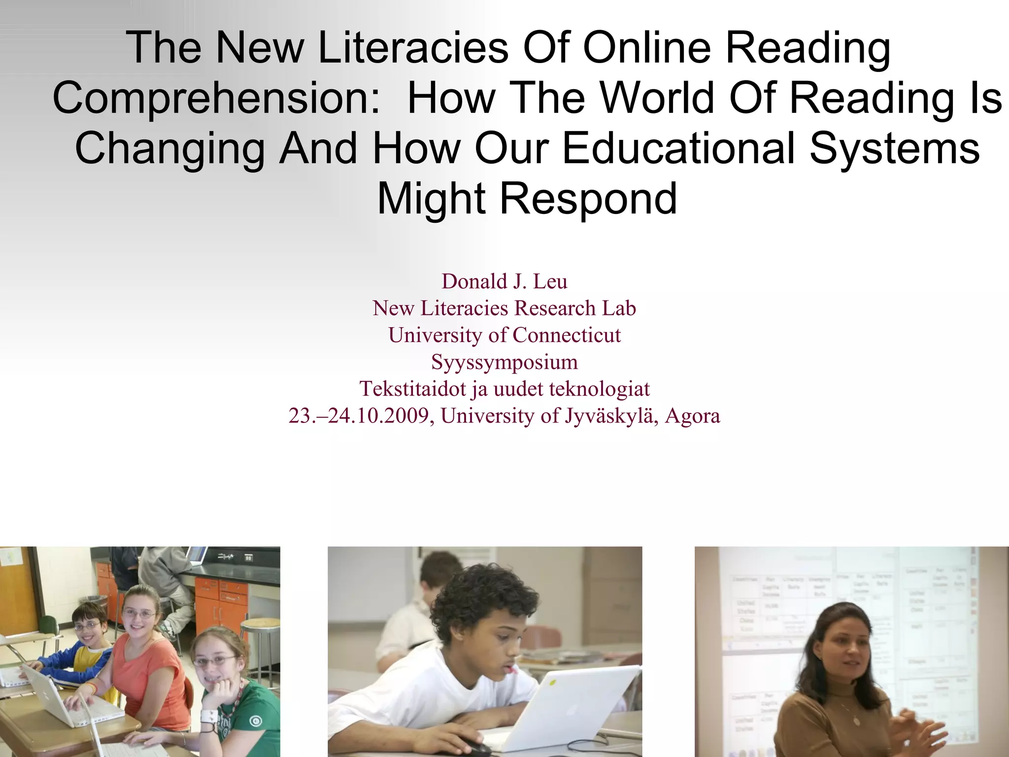 The document discusses how online reading comprehension is becoming the defining literacy skill in today's world. It outlines several key points: