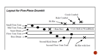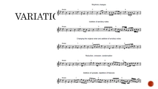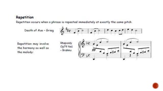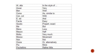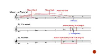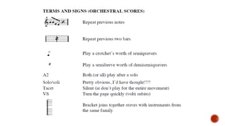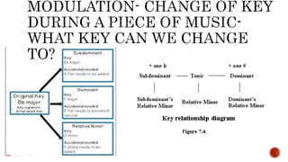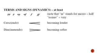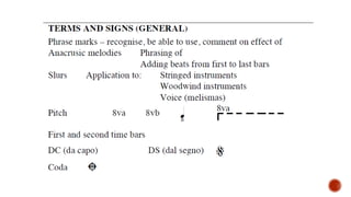 The document provides information about music theory concepts including notation, rhythm, pitch, harmony, instrumentation, and musical forms and structures. It covers these concepts across two levels, with level 2 building upon level 1 by expanding the topics to include more advanced elements such as a wider range of time signatures, keys, chords, and transposition. The purpose is to outline the cumulative knowledge expected at each level for assessment in music theory.
