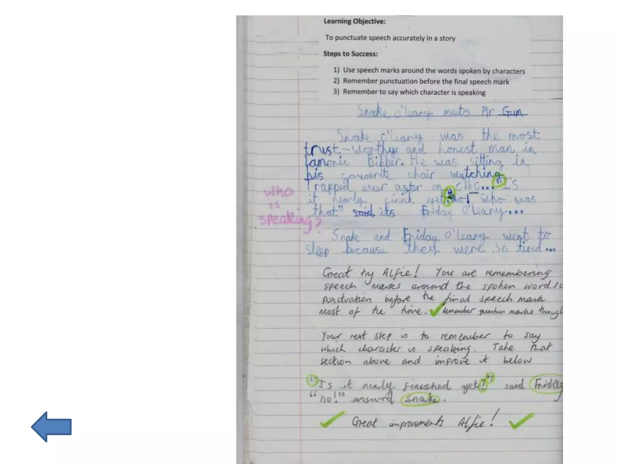 The document provides guidance on effective formative feedback practices for teachers. It discusses how feedback should be focused on learning objectives and success criteria, involve self-reflection from pupils, and indicate where students are, where they need to go, and how to get there. Effective feedback is timely and allows students to respond. Written feedback strategies like marking secretarial features have low impact, while highlighted success and next steps against learning intentions have high impact. The document also cautions against tokenistic implementation of assessment for learning and emphasizes understanding principles of teaching and learning.