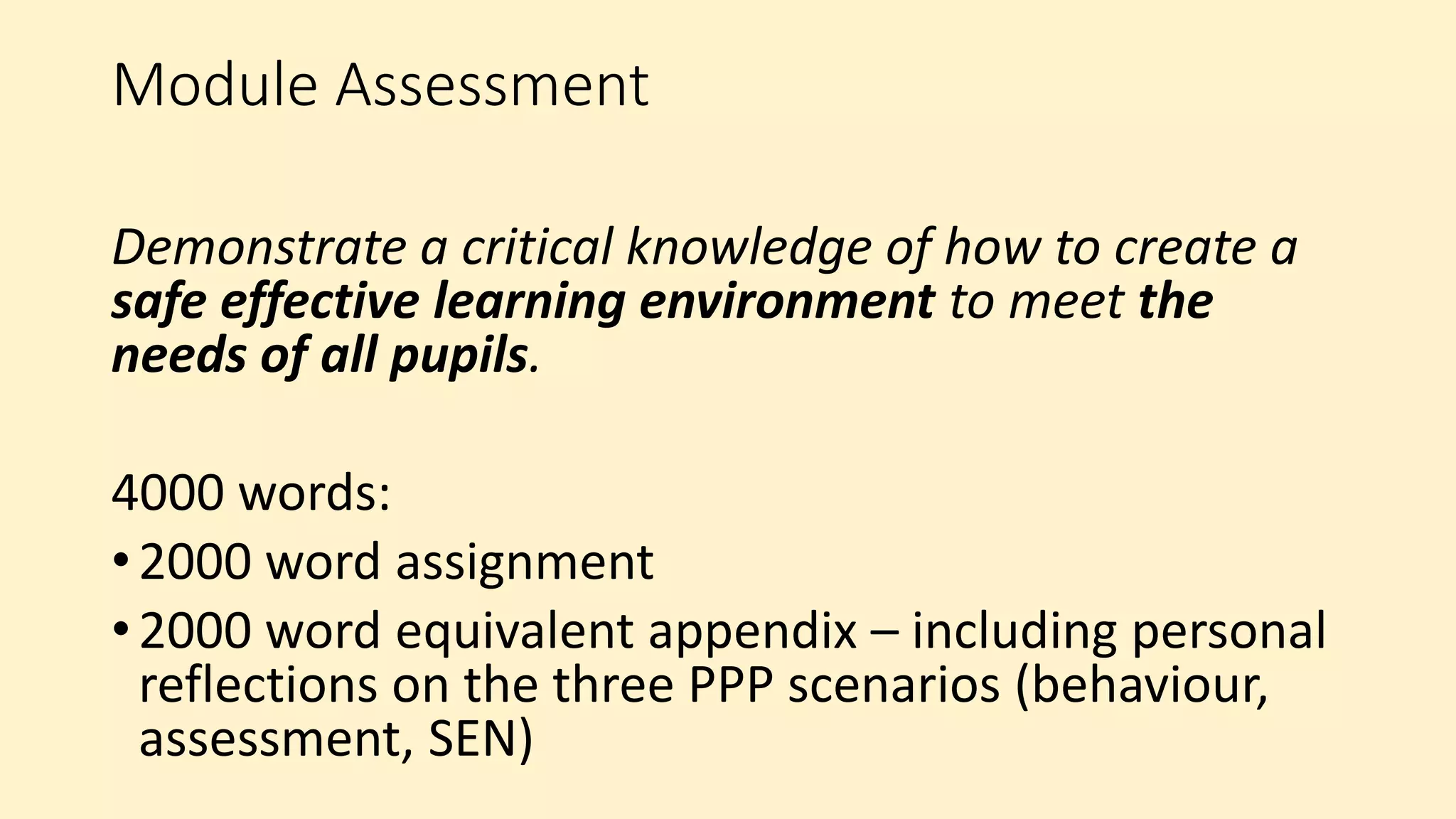 3) The appendix requires 2000 words of personal reflections on three scenarios explored in the module: behavior (bullying), assessment, and special educational needs.