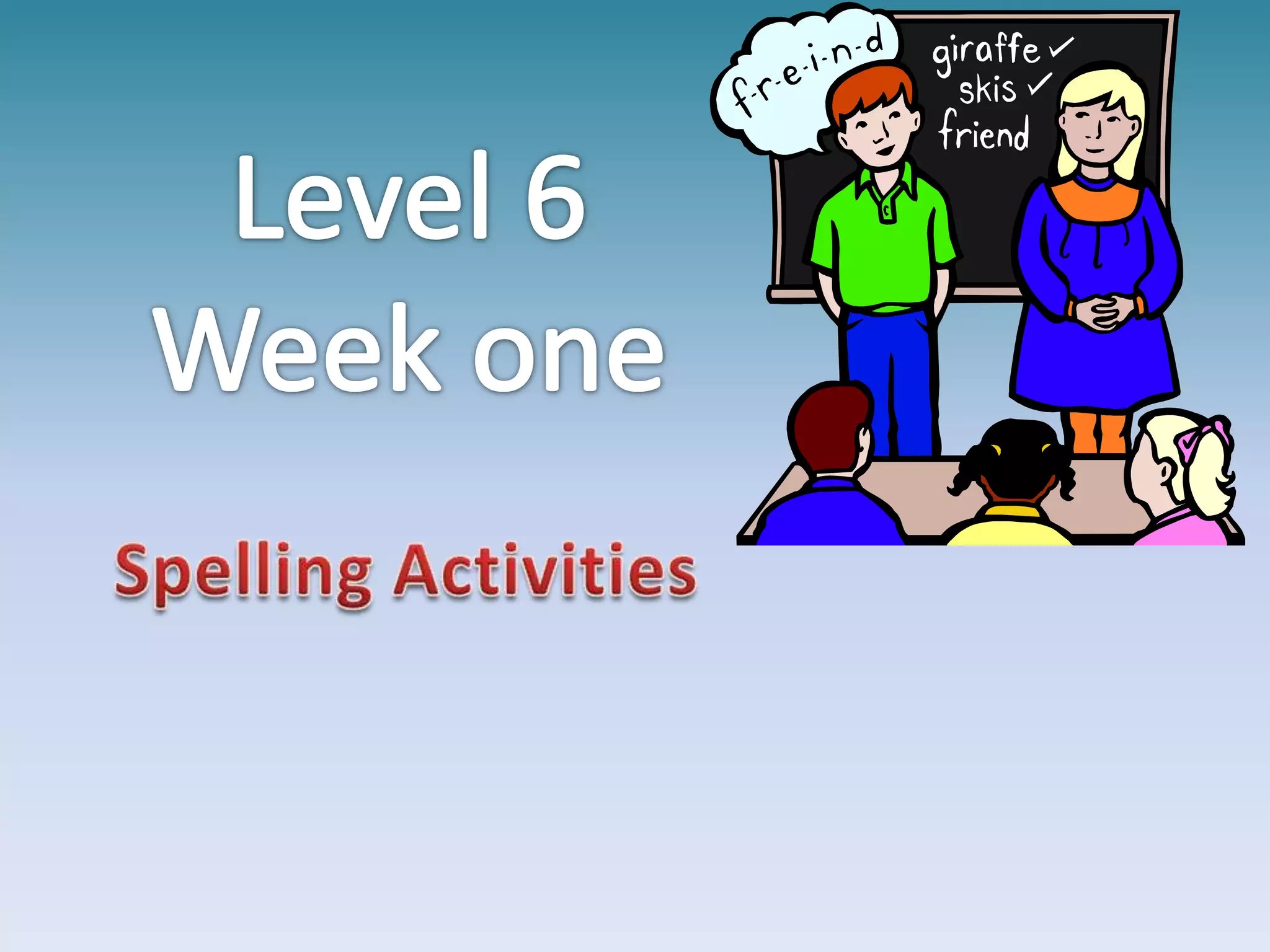 This document outlines spelling activities for level 6 students in week one. It includes a word find puzzle with 10 words, instructions to write or type each word 3 times, and to write a sentence for each word. It also has an activity to identify the number of syllables in each of the 10 words by typing them into the correct column. The activities focus on practicing spelling 10 words through finding, writing, and using them in sentences, as well as identifying their syllable structure.