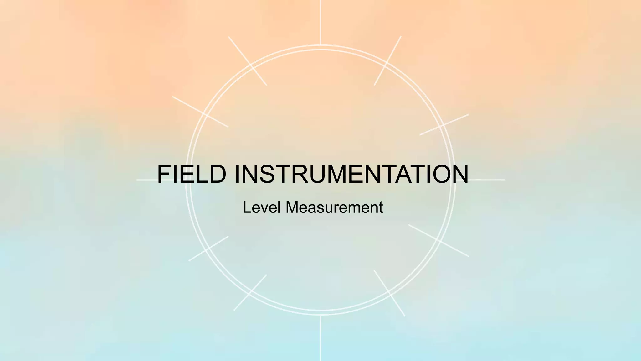 This document provides an overview of various types of level sensors and transmitters used for measuring liquid and bulk-solid levels in industrial applications. It details different technologies such as capacitance, ultrasonic, radar, and magnetic level transmitters, as well as several types of level switches. The content also covers specific applications and industries in which these devices are commonly utilized.