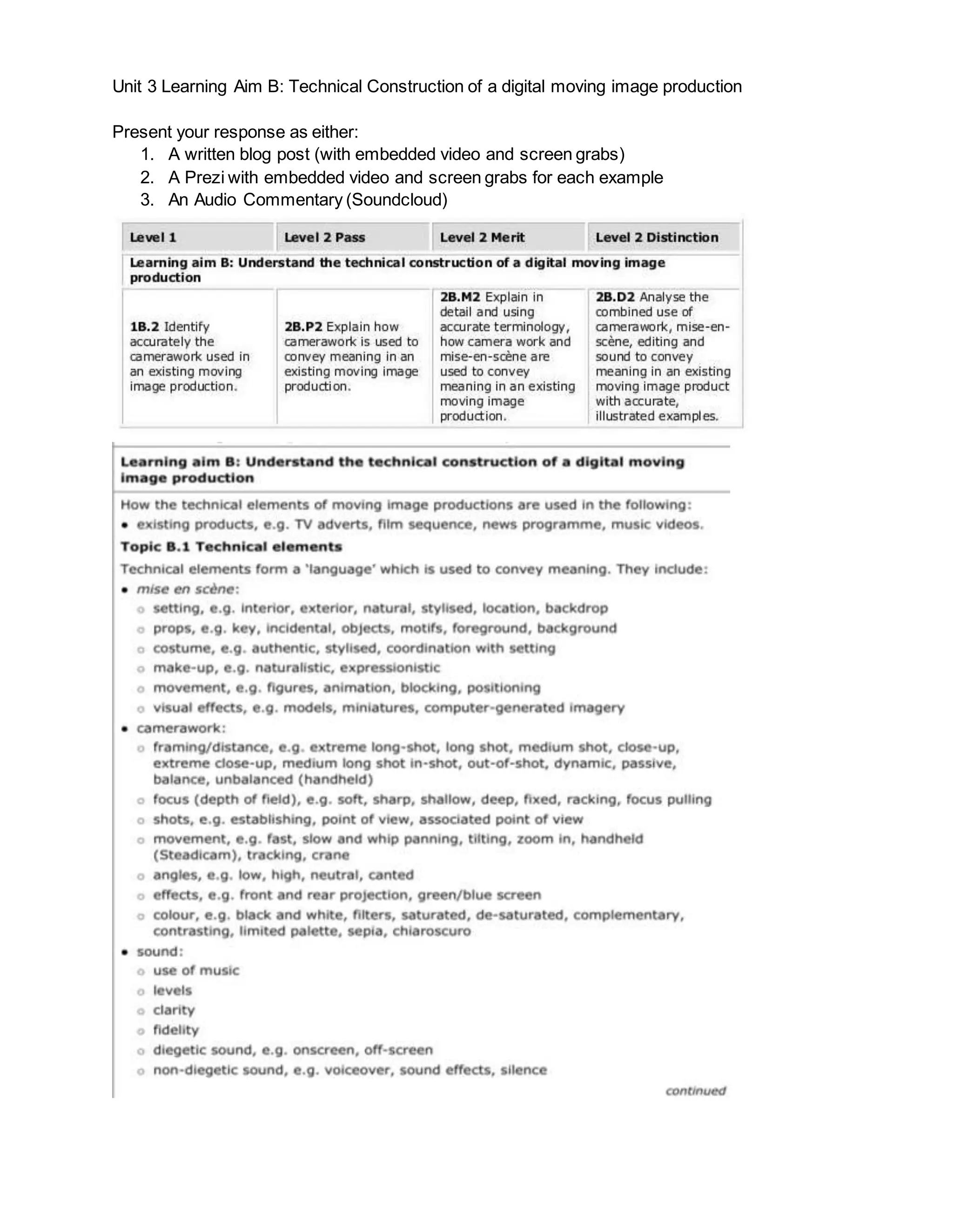 This document provides questions to analyze the technical construction of a trailer for the TV show Skins. It begins by asking the audience and genre. It then asks about specific elements of mise-en-scene like lighting, location, costume, makeup, behavior, and props and how they characterize individuals. Further questions examine how camerawork like shots, angles, movement and focus create meaning. It asks how editing, sound, and pace reinforce the purpose and meaning conveyed by mise-en-scene and camerawork. Achieving the highest level requires a comprehensive analysis of all technical elements.