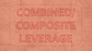 The document discusses financial management concepts related to leverage, detailing the meanings, types, and effects of operating leverage, financial leverage, and combined leverage on a firm's performance. It explains how operating leverage magnifies changes in sales' impact on operating profits, while financial leverage enhances the effect of changes in earnings before interest and tax on earnings per share. The document also includes calculations and examples for understanding leverage and its implications for investment and financing decisions.