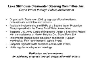 Lake Stillhouse Cleanwater Steering Committee: Clean Water through Public Involvement