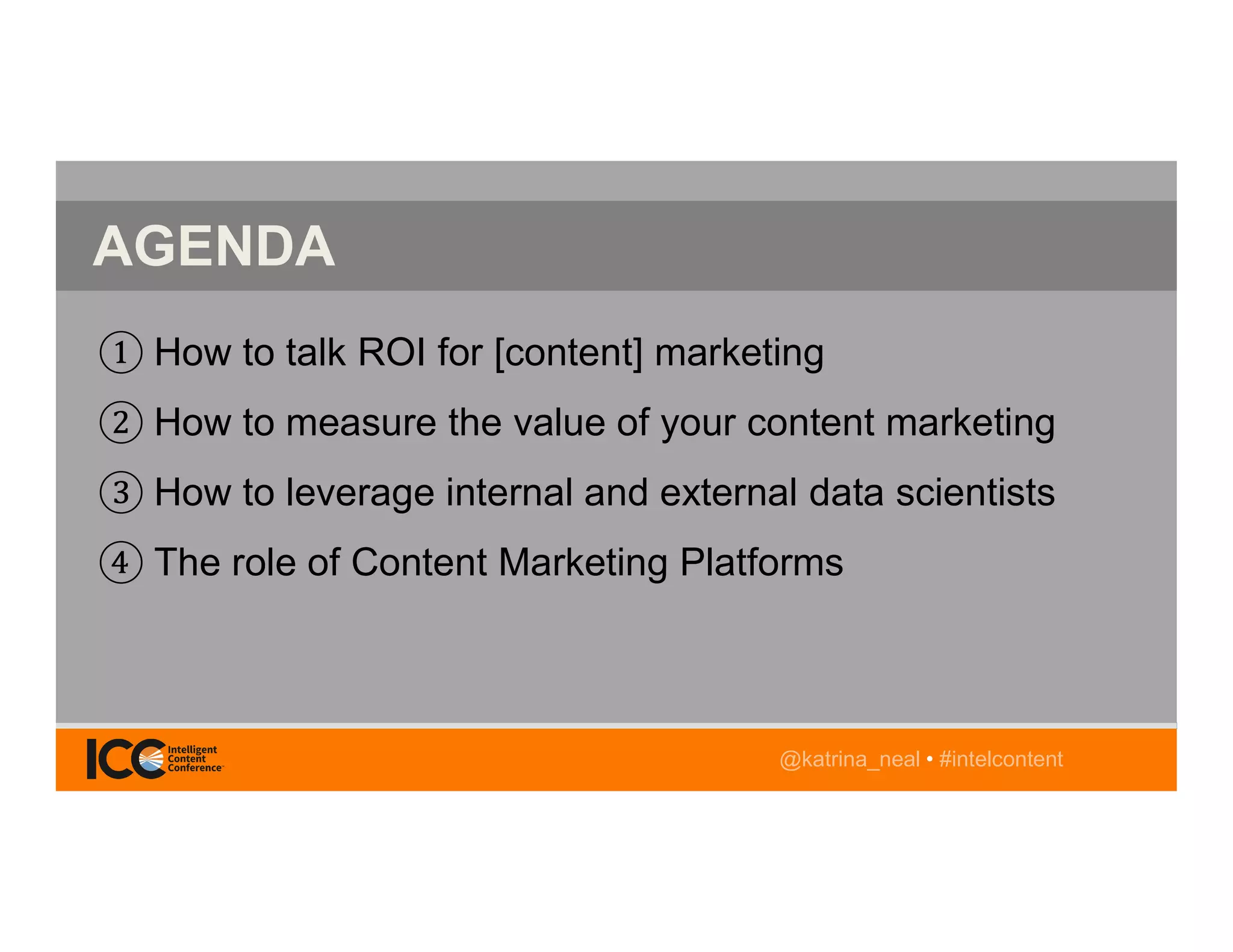 The document discusses the significance of leveraging internal and external data scientists for content marketing, focusing on measuring return on investment (ROI) and return on marketing investment (ROMI). It provides detailed calculations and examples to illustrate how to assess the financial impact of marketing campaigns and the efficacy of various content strategies. Additionally, it highlights the importance of experimentation and A/B testing to optimize marketing efforts and achieve better engagement rates.