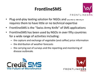 Leveraging low-cost mobile technologies can help address information access challenges in rural areas of developing countries. Studies show mobile phones helped fishermen in India access market information, increasing profits. In Cambodia, an SMS-based system provides agricultural price and weather data to farmers and traders. Research is exploring additional mobile applications, socioeconomic impacts, and ensuring technologies meet users' needs in context.