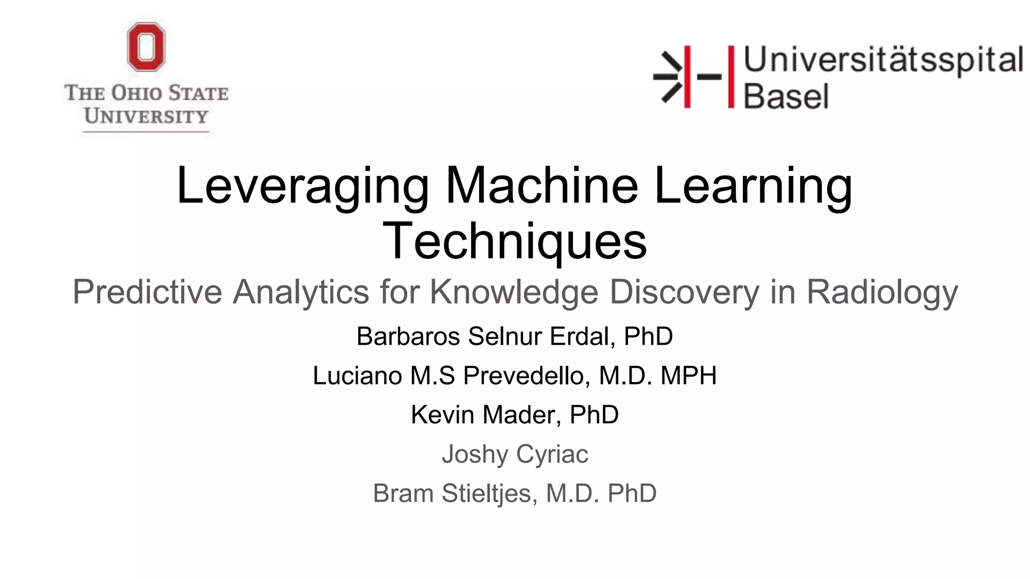The document discusses the use of machine learning techniques and predictive analytics in radiology, emphasizing the importance of analytical tools for improving decision-making, managing risks, and enhancing efficiency in healthcare. It outlines the goals of the course, including learning about data sources, building predictive models, and visualizing results, while also providing practical resources and methodologies for integrating radiology data into predictive modeling. Additionally, the document includes insights on data collection, feature selection, and the validation of predictive models in a clinical setting.