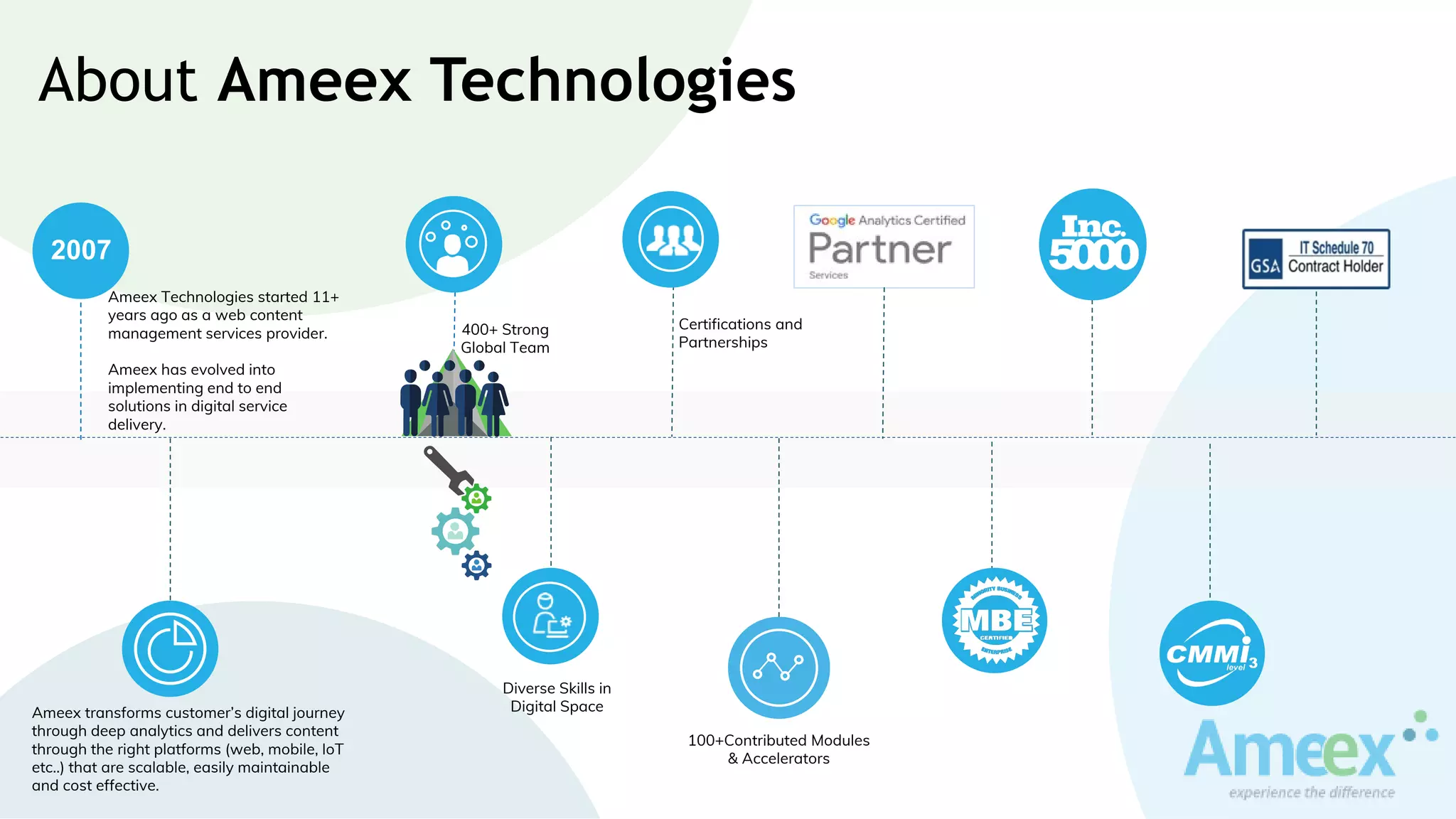 Ameex Technologies, established in 2007, specializes in digital service delivery and customer experience transformation through end-to-end solutions. The company focuses on building a customer-centric approach, integrating various digital tools and technologies to meet growing consumer expectations for personalization and seamless experiences. With expertise in Sitecore and a strong global team, Ameex provides comprehensive services, including digital strategy, managed services, and digital consulting, to enhance user engagement and improve operational efficiency for clients across diverse industries.