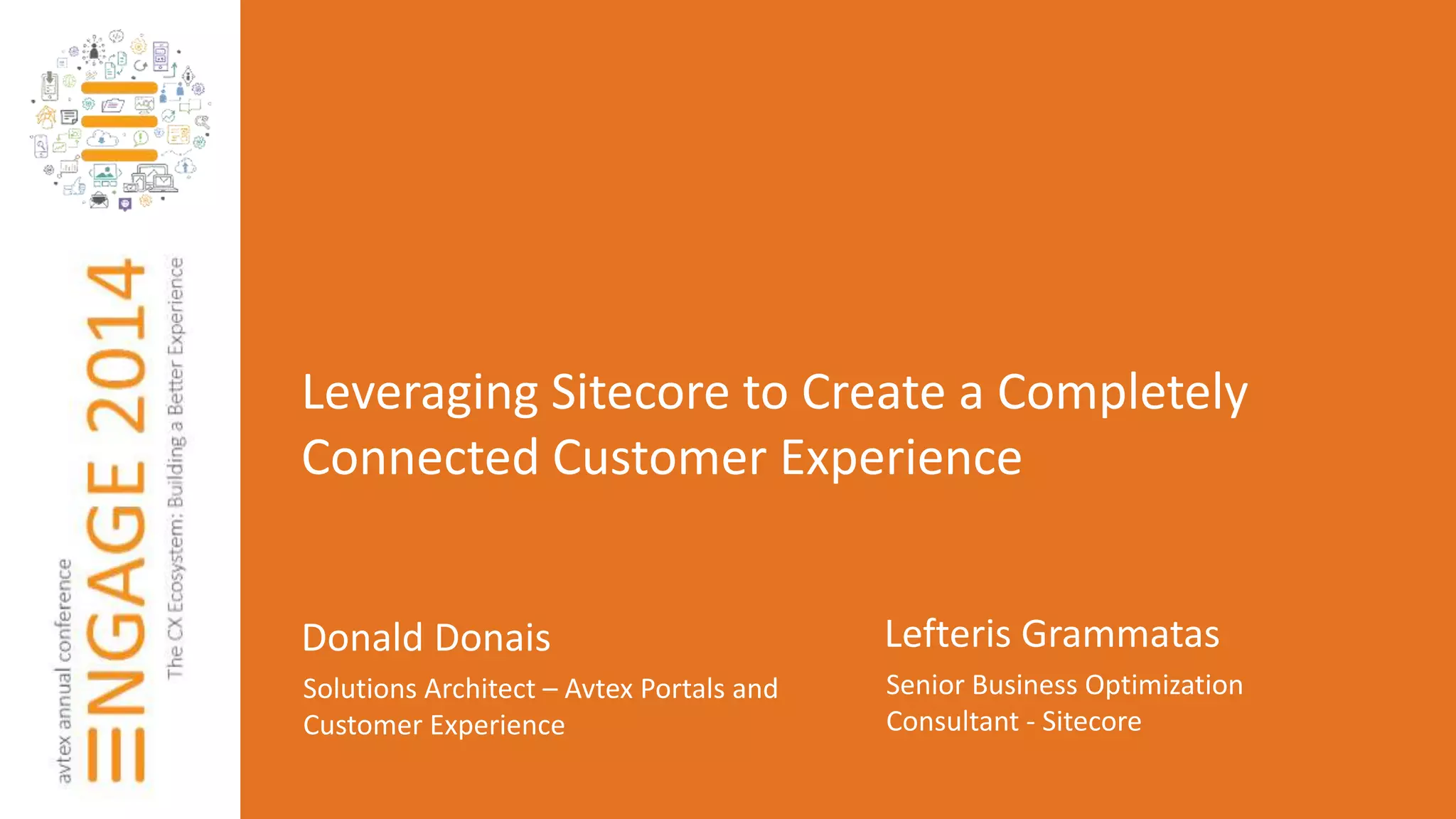 This document discusses how Sitecore can be used to create a connected customer experience. It defines customer experience and the importance of integration across touchpoints. It also discusses defining a customer experience roadmap through personas, journey mapping, and optimizing content. Sitecore allows for personalization through rules, algorithms, and predictive methods across channels based on customers' digital fingerprints. Examples are given of how Sitecore has been used by companies for personalization.