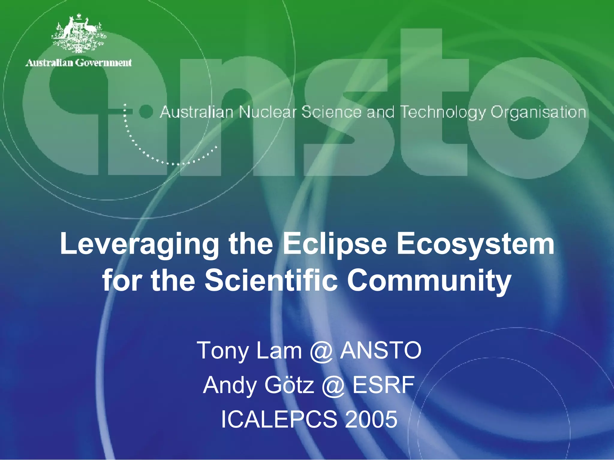 The document discusses leveraging the Eclipse ecosystem for scientific communities. It provides an overview of Eclipse, including its history and architecture. It also describes how various scientific projects, such as GumTree and Parallel Tool Platform (PTP), are using Eclipse as an open source collaboration platform.