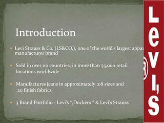 Levi Strauss & Co. is one of the largest apparel manufacturers globally, known for its jeans and brands like Levi's and Dockers, with a commitment to sustainability and responsible commercial success. Founded in 1853, the company revolutionized the denim market by introducing riveted jeans in 1873, which led to its prominence and historic sales surpassing $1 billion by 1974. The company continues to innovate and has implemented various marketing strategies to maintain its status as an American icon while expanding into global markets.