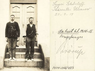 Claude Choules was a British supercentenarian who served in the Royal Navy from 1901 until 1918 and was the last surviving combat veteran of World War I, living from 1901 to 2011. The document also lists some archives boxes and folders containing records related to Ingeborg Stemann and Ivan from Odessa, as well as maps, photographs and other images available from the Royal Library of Denmark and Europeana Collections 1914-1918.