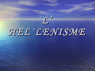 1. CONCEPTE D’HEL·LENISMEÉs el període de la cultura grega posterior al regnat d’Alexandre el Gran i l’interès o fervor per la imitació de la cultura i ideals dominants i característics de la Grècia clàssica, en particular tal com es desenvolupà a Atenes als segles V i VI. Comença amb la mort d’Alexandre el Gran i es perllonga fins finals del segle II d.C. i està caracteritzat per l’expansió “imperialista” del grec com element “civilitzador”. És el fenomen de difusió de l’esperit grec a l’àmbit del món oriental, que suposa una universalització d’aquesta cultura.