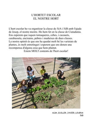 L'hort escolar ho va organitzar la classe de 5éA i 5éB amb l'ajuda