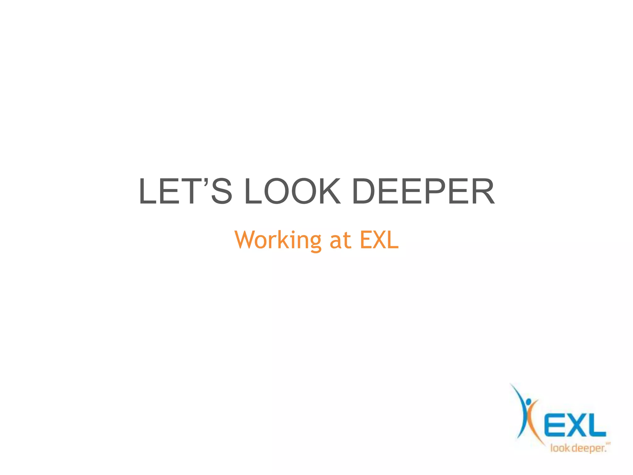 EXL is a global operations management and analytics company founded in 1999 with over 23,000 professionals serving over 270 clients. EXL has experienced strong growth, with a compound annual growth rate of 25.3% from 2006-2013. EXL provides services across multiple industries including insurance, healthcare, banking and financial services. It has delivery centers across North America, Europe, India, and Asia to serve its global clients. Analytics is integrated into all of EXL's services to drive business impact and optimize processes for its clients.