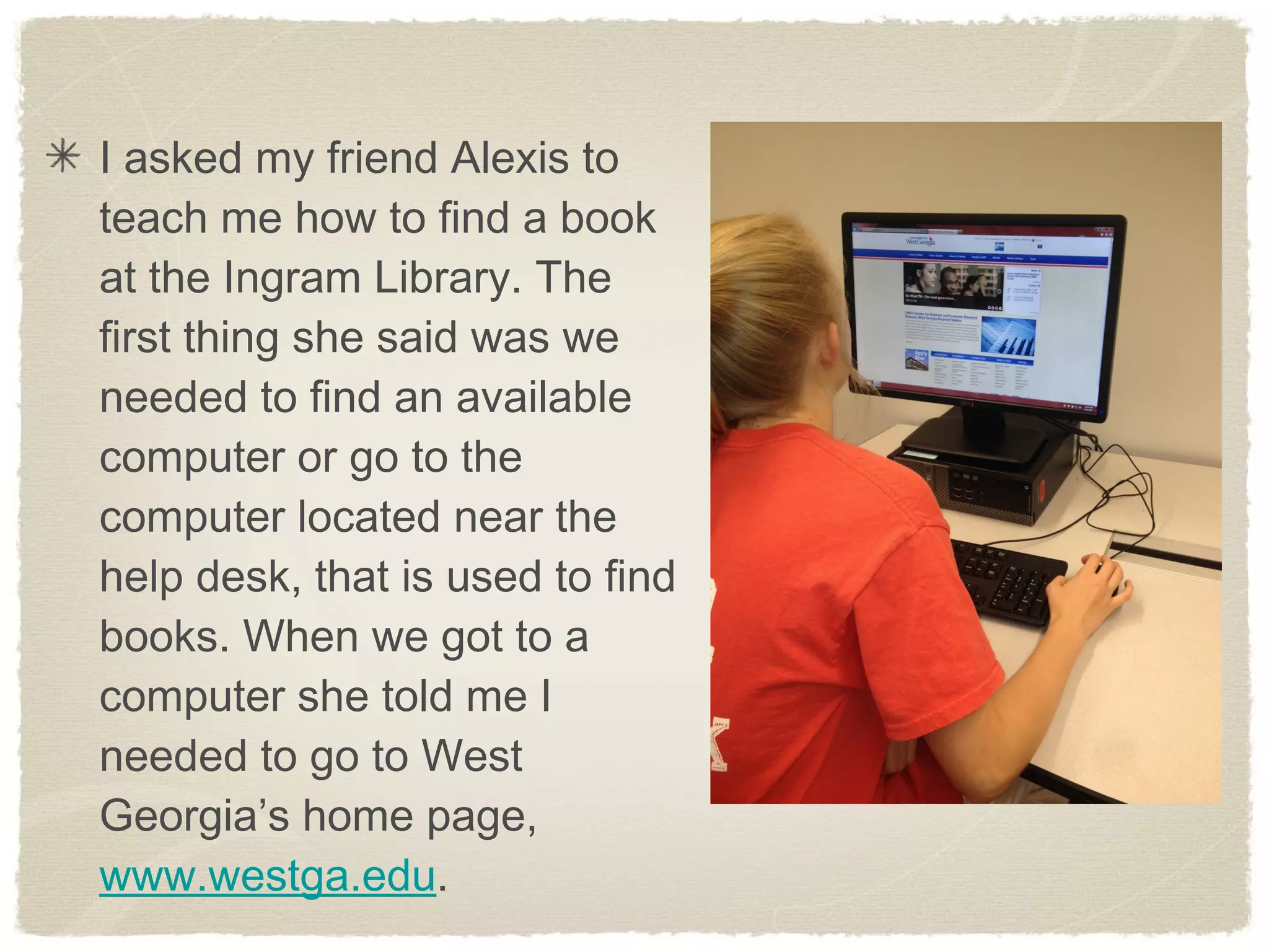 Alexis teaches her friend how to find a book in the Ingram Library. She explains that you first need to access the university's homepage and click on the library hyperlink at the bottom of the page. This will take you to the library catalog, which is a record of all the books in the library. You can search by title, author, or subject to find available books. The book's record will display its call number and location in the library. Alexis and her friend use this process to find a book on serial killers for the friend's criminology class paper.