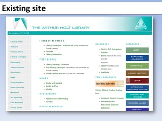 The document discusses using LibGuides and Facebook to create a virtual 24/7 library. It suggests considering current information sharing structures at a school and their limitations/benefits. It also discusses reaching an ideal digital library by giving up old practices and engaging the school community and professional learning network for help. Finally, it provides an overview of what LibGuides is and how it can be used to create interactive subject guides with statistics.