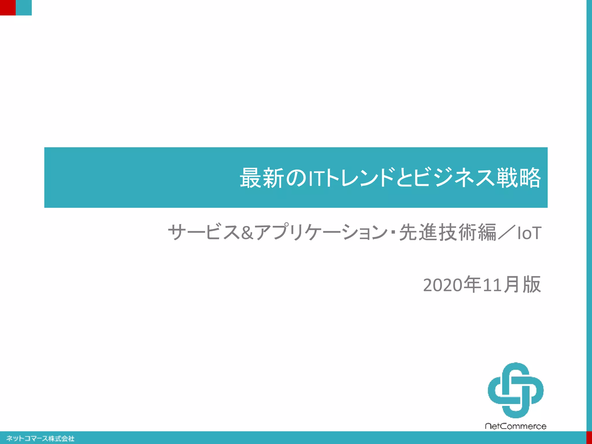 機器・稼働状況 購買者(カメラ画像) 通行量(人感センサ) 気温・湿度(気象センサ) 地域・時間・曜日別の販売傾 向や収益状況 稼働状況と故障傾向 商品開発 マーケティング 生産計画 気象会社へのデータ販売 地域企業へのマーケット分析 サービス 詳細な販売傾向や収益状況 詳細な個稼働状況と故障傾向 レコメンデーション処理 商品開発 マーケティング 生産計画 購入者に応じた 商品レコメンデーション 気象状況や利用状況に応じた 機器の制御 保守点検作業 商品の補充 商品の入れ替え 自動販売機 従来型までの対応IoTの可能性