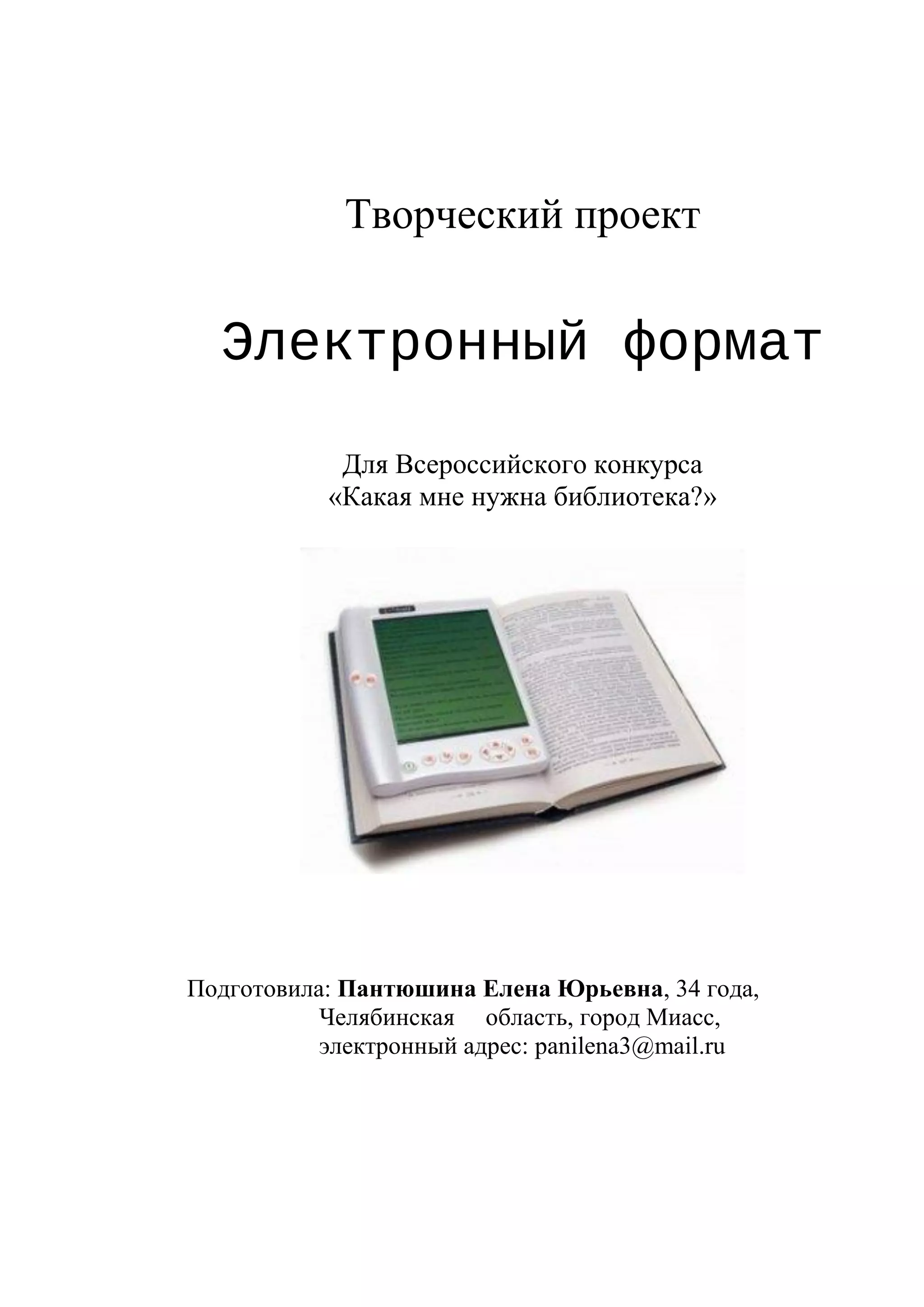 Документ представляет творческий проект, посвященный модернизации библиотек в условиях цифрового мира через использование новейших информационных технологий. Основные предложения включают внедрение электронных табло, бегущих строк и интерактивных пособий для улучшения взаимодействия с пользователями и повышения их интереса к чтению. Проект подчеркивает необходимость сочетания традиций и современных технических решений для создания привлекательной и удобной библиотечной среды.