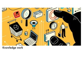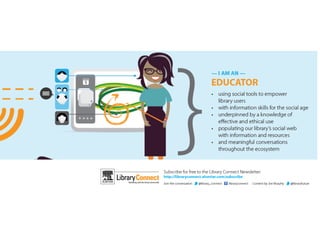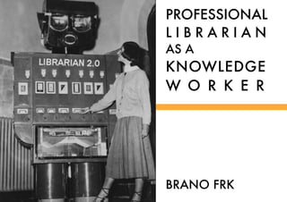 The document discusses the role of professional librarians as knowledge workers. It highlights how librarians help patrons learn and access information through social interactions and new technologies. Contact information is provided for Branislav Frk, who focuses on future libraries and the skills needed for knowledge work.